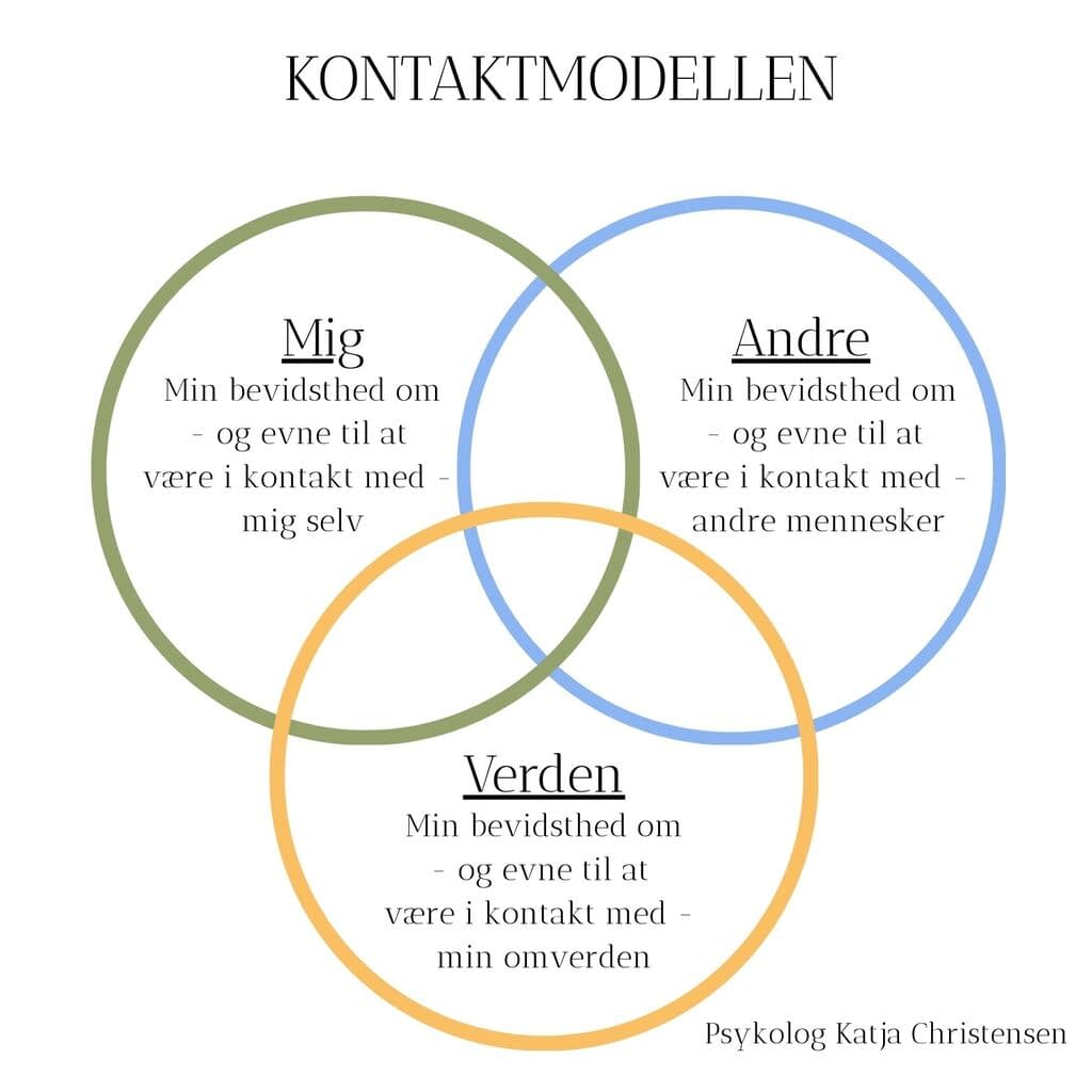 Kontaktbegrebet kan – som så mange andre psykologiske begreber – forekomme abstrakt og bredt. Min tilgang vil her være af pragmatisk snarere end begrebsmæssig karakter: Frem for at definere begrebet intellektuelt via ord, vil jeg gennemgå, hvad de tre forskellige dimensioner indbefatter, og hvorfor jeg anskuer dem alle som værende væsentlige for os. Ved at anvende en model for kontakt – Kontaktmodellen – er det først og fremmest nemmere at arbejde med vores kontaktevne i praksis, og det kan hjælpe os til at undgå nogle af de faldgruber, der kan være ved et overdrevet fokus på os selv, på andre eller på verden.